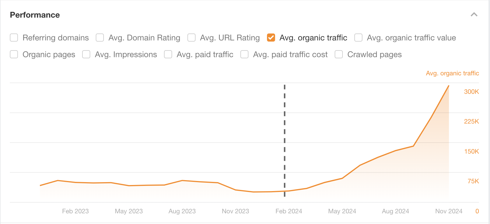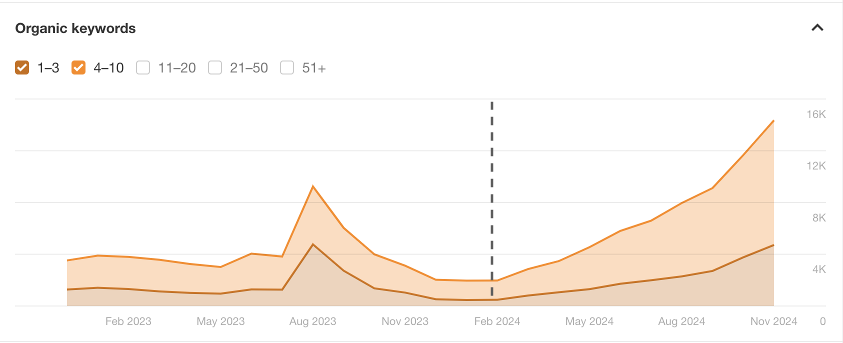 Organic traffic to their website increased dramatically, jumping from 28,000 to 293,000 monthly visitors. This surge in traffic was accompanied by a 2x increase in conversions from organic search.